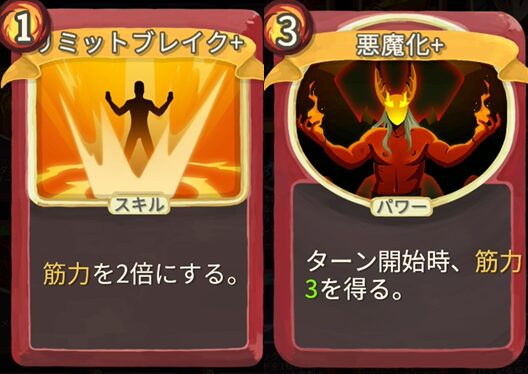 - 悪魔化+ ー ターン開始時、筋力3を得る。