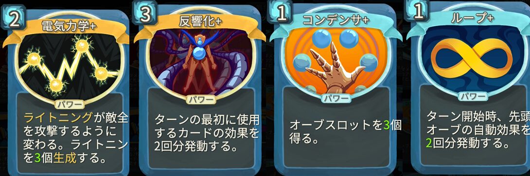 - 電気力学+ ー ライトニングが敵全体を攻撃するように変わる。ライトニングを3個生成する。